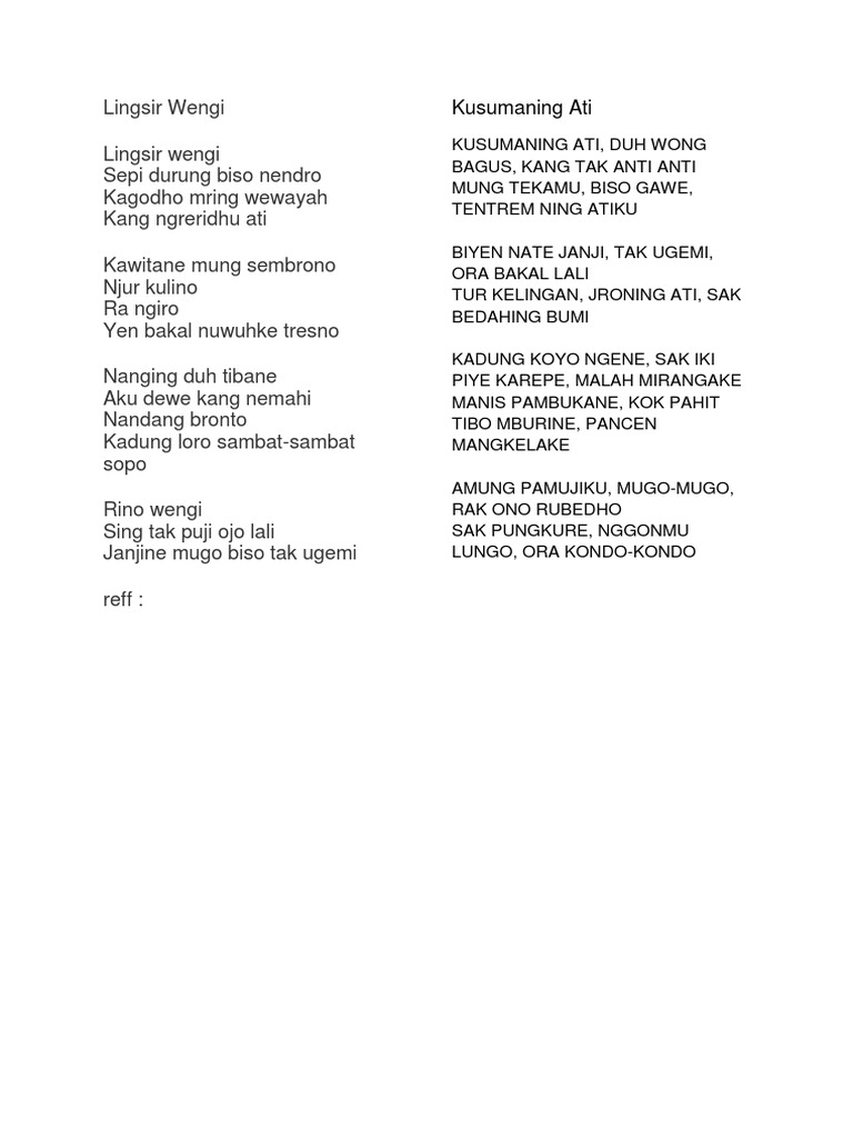Bahasa gaul yang salah kaprah enaknya kek mau meninggal emang anda kira meninggal rasanya nikmat? Lagu 'lingsir wengi' yang disenandungkan didi kempot. Lingsir wengi is a member of vimeo, the home for high quality videos and the people who love them. Lingsir wengi sliramu tumeking sirno ojo tangi nggonmu guling awas jo ngetoro aku lagi bang wingo wingo pernah mendengarkan lagu tersebut? Lingsir wengisepi durung biso nendrokagodho mring wewayangkang ngerindhu ati kawitanemung sembrono njur kulinora ngiro yen bakal nuwuhke tresno.